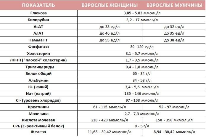 Стандартное (краткое) биохимическое исследование крови, норма