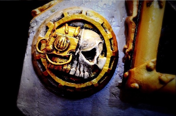 Эмблема Механикус:Только самые ценные образцы оружия выпущенные на марсианских кузницах несли на себе это особое клеймо Механикус. Болтеры ангелов смерти Императора достойны сказаний, но даже среди них болтер Мордреда выделяется благодаря красоте исполнения и легендарной личности владельца.