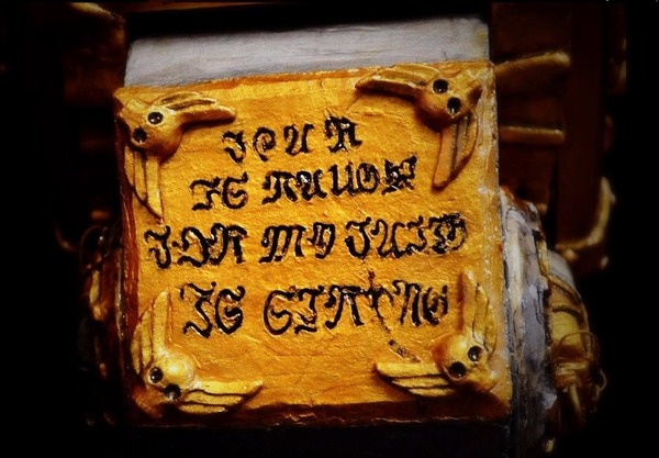 Левая гравюра: "Я не боюсь зла, я не боюсь смерти, потому что сам Император явится за мной.".