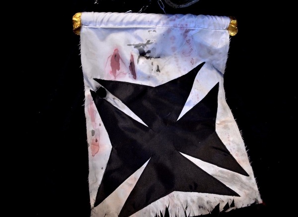 Знамя черных храмовников закрепленное черепами и цепью:Даже смерть не осквернит победы Чёрных Хромовников! И знамя их, пострадавшее в сотнях сражений, восстанет над полем брани, когда пробьёт час славы Империума!