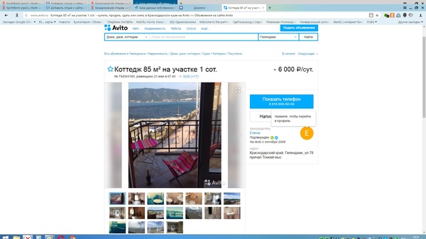 Итак, решили мы с женой и детьми съездить на наш славный юг. После продолжительных поисков, нами было найдено более чем заманчивое предложение на из рук в руки , об аренде дома на берегу, за 2500р, так же в объявлении было написано что взимается комиссия агентства 3300р. После звонка в агентство, нам было сказано, что для получения контактов необходимо оплатить комиссию в эти 3300р. Мы уточнили, действительно ли предложение актуально, получив утвердительный ответ что да, мы получим договор об аренде с собственником и его координаты после оплаты комиссии агентства. После оплаты нам прислали доступ к базе ( казалось бы зачем?)...и тут же, после зачисления средств на их счёт, о совпадение, менеджер перезвонил и сообщил что именно к этому собственнику, именно этого дома приехали родственники (да,да именно на эти даты) и дом он сдавать не будет, хотя 15 мин назад менеджер говорил что все в силе. После чего нам было сказано, вот вам база,вы за неё заплатили, ищите, никаких альтернативных вариантов прислано не было. Ок, начали искать в итоге как уже наверно ясно, база оказалась полной липой, из тех немногих адресов что там актуальны, цены отличаются в 1,5-2 раза.Я понимаю, лох не мамонт, не вымрет. Но сейчас период отпусков и может быть это убережет кого-ть от ошибки. Лох я, тег тоже мое. Ниже, дабы не быть голословным, скрины предложения в базе и реальные от собственника.