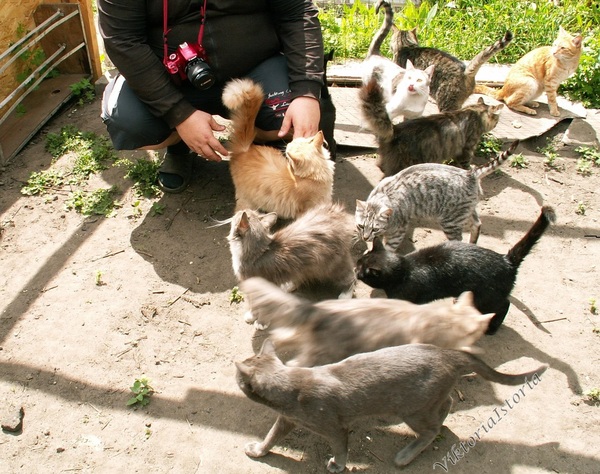 - Приют организовал у себя дома обычный человек и содержит, вкладывая свои средства и силы, и полагаясь только на помощь друзей. Он подбирает или ему привозят кошек в тяжелом, порой безнадёжном состоянии, иногда от умерших хозяев, иногда выброшенных или покалеченных. И он их выхаживает