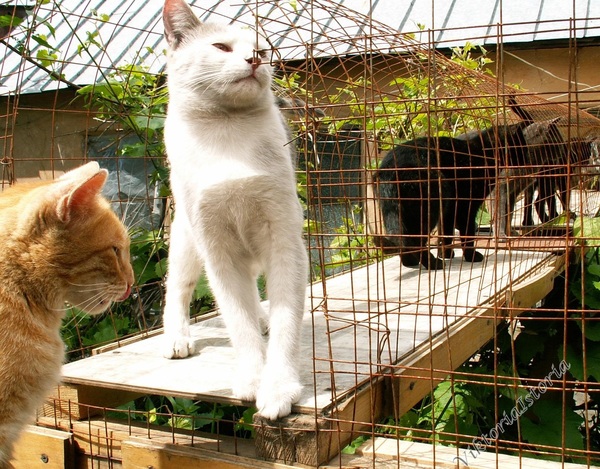 А вот так коты бегут, когда в вольер заходит Женя :)