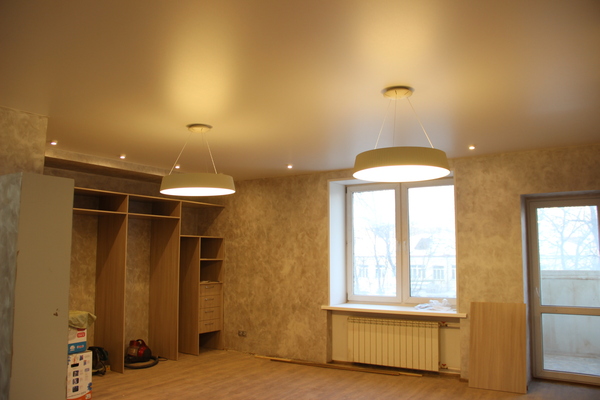 1. возведение нескольких конструкций из гипсокартона, а точнее две одна на потолке прямая, другая 270см на 190см. затем выравнивание стен, подготовка к обоям, наклеивание обоев и ламинат на пол.