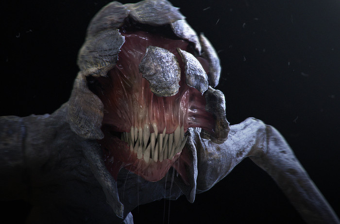 У тебя на экране утвержденные концепты Карраско за два месяца до релиза картины. Дело в том, что уже на стадии чернового монтажа режиссер и продюсер решили, что монстр выглядит недостаточно страшно. Пришлось редезайнить в спешном порядке. Но по словам супервайзера анимации Рика О’Коннора, они просто откатились к первоначальным идеям, которые оказались лучше. Если процессом анимации руководил О’Коннор, то супервайзером всего проекта был ветеран Скотт Фарра, удостоенный премии «Оскар» за «Кокон» и отвечавший за графику к первым двум «Трансформерам» Майкла Бэя. К слову, Майкл Бэй – один из продюсеров дилогии «Тихое место». Ему не в первой продюсировать хорроры. Тот же ремейк «Техасской резни бензопилой» его рук дело.