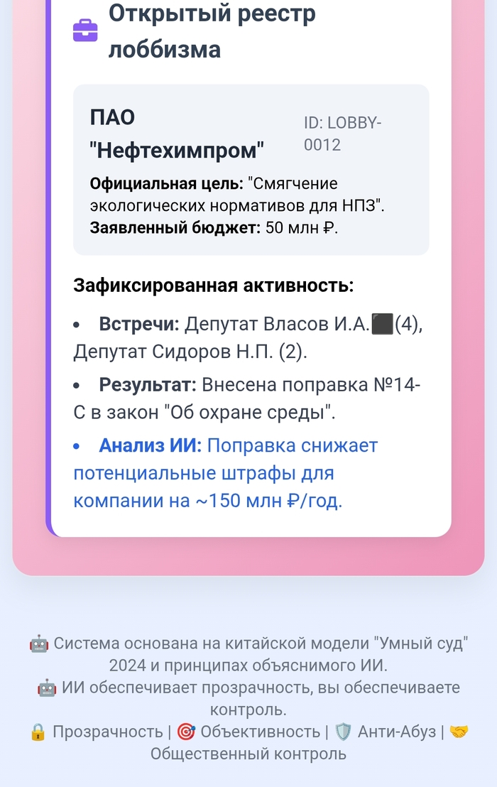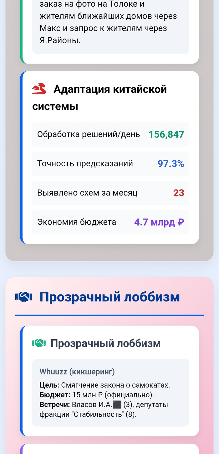 Меня интересует раздел прозрачного лоббизма. Политологи, что там нужно добавить с учётом механик?
