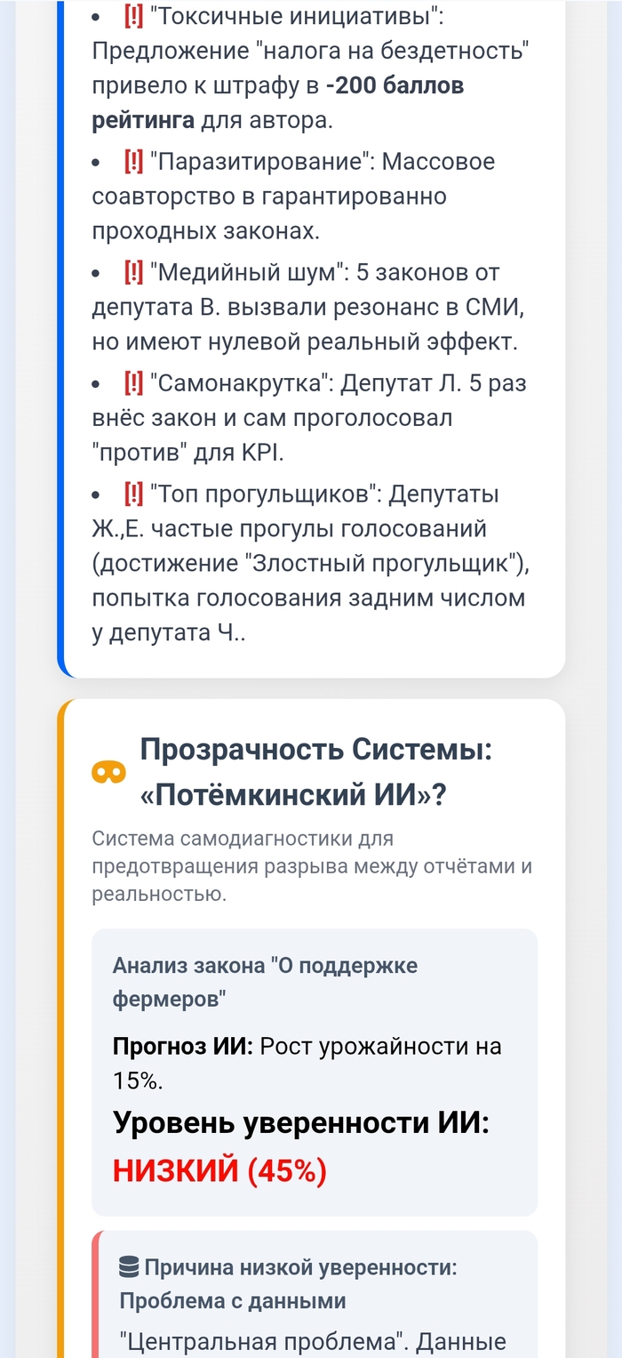 2.2. Отсутствие призывов и рекомендаций: Опубликованные материалы не содержат призывов к действию, инструкций, рекомендаций по оценке кого-либо, разжиганию розни или совершению противоправных действий. Проект является исключительно объектом для теоретического обсуждения в области дизайна интерфейсов и анализа данных.