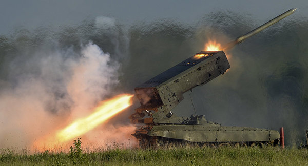 300 мм реактивный снаряд 9М55С с термобарической боевой частью для реактивной системой залпового огня (РСЗО) "Смерч"
