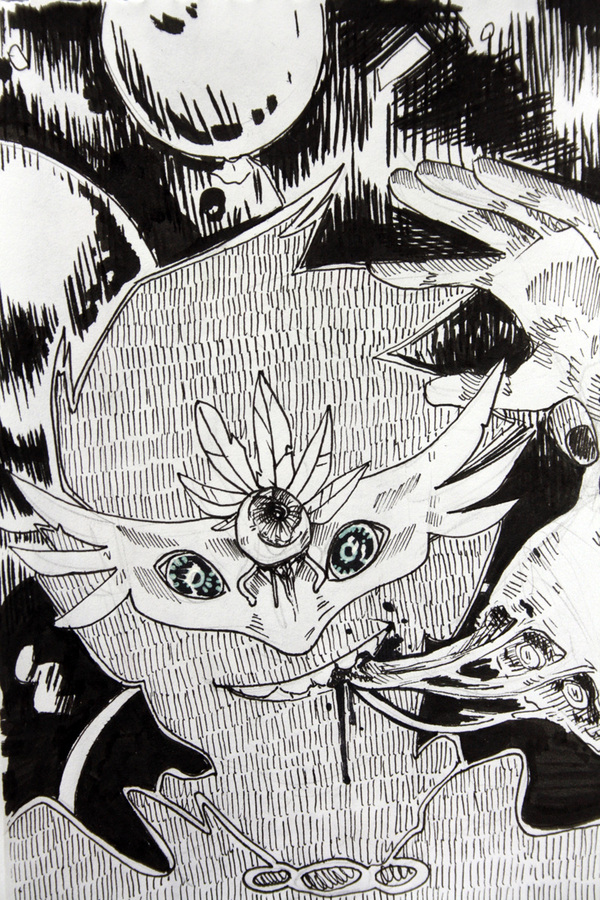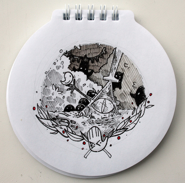 //рисую в основном в круглом блокноте с диаметром примерно 10 см, линеры Micron, Edding, Copic, серые маркеры Promarker, серые фломастеры-кисти Faber-Castell, обычная черная тушь Гамма//