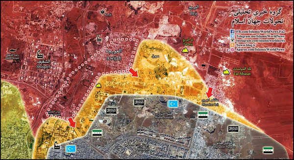 САА, Республиканская Гвардия и палестинская Лива аль-Кудс полностью отбили у боевиков район Овейджа. Освобождение заняло 72 часа (еще недавно Рамуси отбили за это же время). Не теряя стратегической инициативы, через час была взята дорожная развязка Джандул. Далее работала авиация.