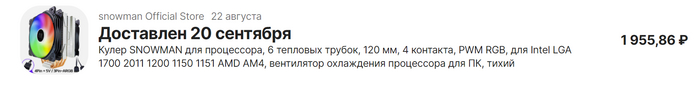 Кулер для Охлаждение процессора можно было заказать и в России, но решил попробовать китайски бренд Snowman, радиатор аж с 6 теплопроводящими медными трубками.