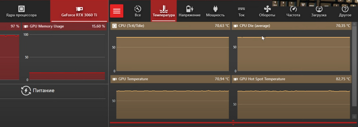 Тест после 20 минут в OCCT на полную нагрузку системы.