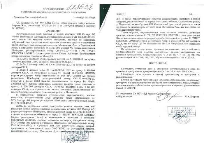 В постановлении о возбуждении уголовного дела прямо сказано: «лицо (Илья Сучков. Авт.) пыталось похитить денежные средства в сумме 22 900 000 долларов США, принадлежащие «01 TRUST SERVICES LIMITED», конечным бенефициаром которого является гражданин Минц Д.Б. (сын Бориса Минца. Авт.)".