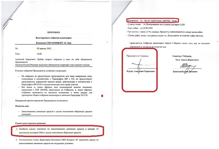 Займ был сделан двумя контрактами: 03 апреля 2012 года (договор займа № LA-01-SFO-03042012) на сумму 15 500 000 долларов США и 01 октября 2012 года (договор займа № 01-SFO-011012) на сумму 6 400 000 долларов США. И самое интересное – это условия договоров займа. Деньги отдавались на десять лет, до 2022 года, под 2,5 процента годовых, проценты тоже можно было погашать в 2022 году и (внимание!) без какого-либо обеспечения займа. Просто так.