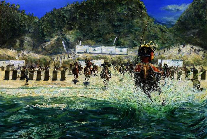 Побережье Кюсю представляет большие трудности для высадки завоевателей. Его песчаные пляжи удобны и прекрасны, но сам остров — это путаница из заросших лесом гор, которые исключают быстрое наступление. Там есть только одна хорошая гавань — залив Хаката, защищённый островами, которые являются природными волноломами, и двумя мысами, протянувшимися на запад, словно приглашая корабли со всей материковой Азии в свои мелкие воды, на пологие песчаные берега и низменные земли вдали от моря. Японские военачальники выступили из местного административного центра в десяти километрах на юго-восток от современной Фукуоки и устроили лагерь ближе к побережью. Сперва монголы на пробу высадились на западном конце Хакаты, наверное, замышляя направиться вверх по реке, но затем передумали и высадили армию на берег прямо на середине бухты. Там они без труда прорвались через бесполезные заслоны неорганизованных японцев. Как передает один японский источник, внук японского военачальника выпустил свистящие стрелы, подавая сигнал к началу боя, «но монголы только посмеялись. Беспрестанно колотя в барабаны и гонги, они заставили японских лошадей, обезумев от страха, рвануть с места. Не в состоянии справиться со своими лошадьми, не думали о том, чтобы противостоять монголам».