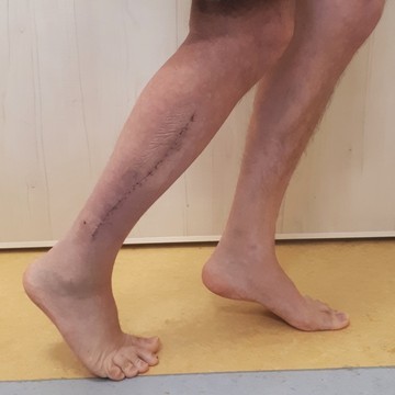 Последняя операция проходила уже под местной анестезией: транспозиция (прим. Ред. - пересадка) кожного лоскута с кожной пластикой с плеча. Это самый простой и верный способ для заживления обширных раневых поверхностей.