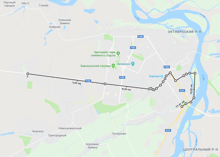 И вот самое шикарное - Новоалтайский путь, где от неё до вокзала 15 км, а до павловского 16,5км, это и есть первая очередь. Полностью по ЖД, можно сделать скоростной наземный транспорт с Барнаульским кольцом (36,5км!) которое будет пересекать всё
