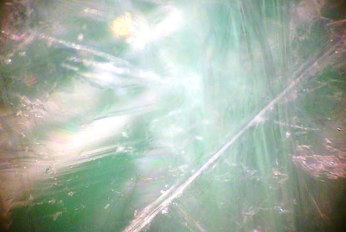 Фото №13 - Аквамарин (Be₃Al₂Si₆O₁₈+Fe) под микроскопом. Увеличено в 64 раза. Голубая разновидность берилла;