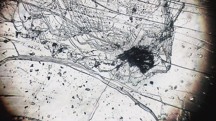 Фото №9 - Мусковит (KAl₂(AlSi₃O₁₀)(OH)₂) под микроскопом. Увеличено в 64 раза;