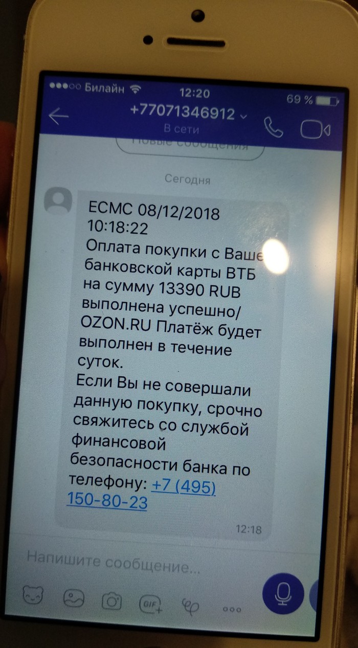 Как отказаться от заказа, что бы курьер не тратил время на доставку уже ненужного заказа? Как вернуть деньги? Почему на контактный номер, оставленный для курьера, в вайбер пришло сообщение о том, что с карты ВТБ, которой нет и не было, была оплачена покупка в Озон на приличную сумму и, если я ее не совершал, свяжитесь по такому то номеру?