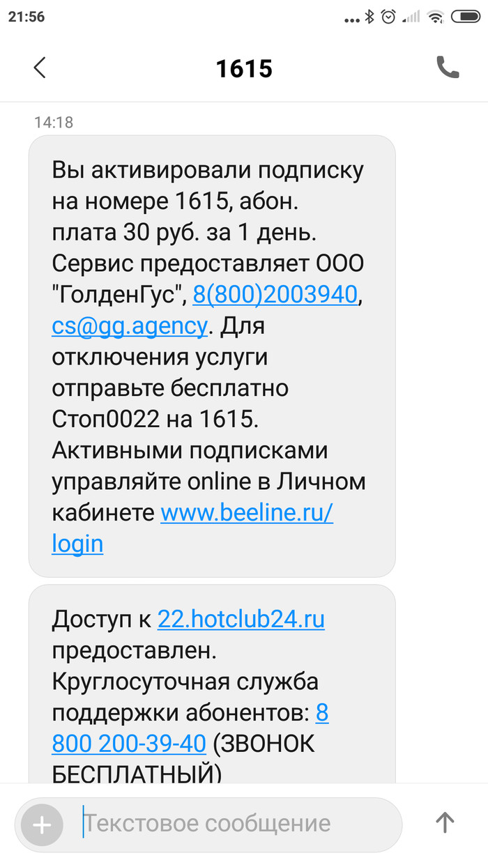 Телефон лежал целый день на столе, я им не пользовался с утра. Часа в 4 дня увидел только смс. ну естественно стал проверять что-за хня такая. Позвонил в ТП где сказали , что я все сам активировал и сам дурак. Залез в ЛК все поотключал, бабло конечно уже списали :)