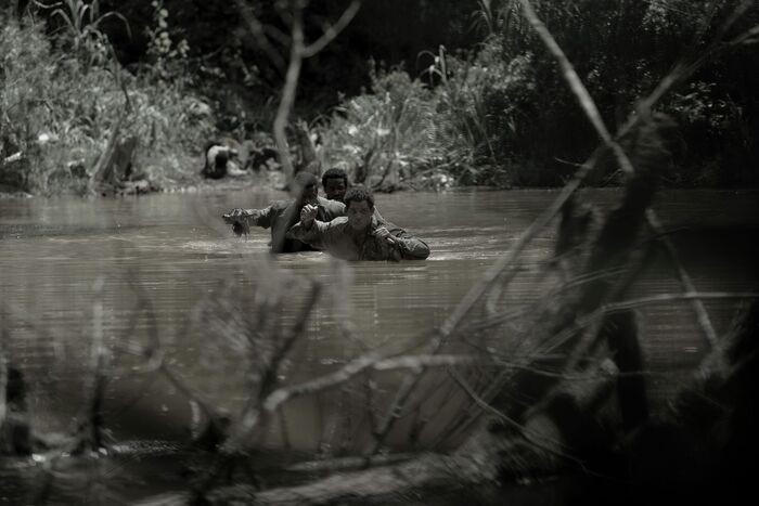 Первый недостаток — картинку сделали черно-белой, что вредит восприятию и не позволяет погрузиться в историю на 100 процентов. Ничего не имею против ч/б, но здесь карта не сыграла. Будь изображение цветное, смотрелось бы однозначно лучше, ибо виды Луизианы классные, живая природа, крокодилы рвут людей на части, есть батальная сцена в конце, но не хватает цвета(как по мне). Краски появляются лишь в моменты, когда горит огонь, само пламя светится, а вместе с ним и лица персонажей. Может есть цветная версия? — Если есть, тогда этот пункт, вероятно, сгинет.