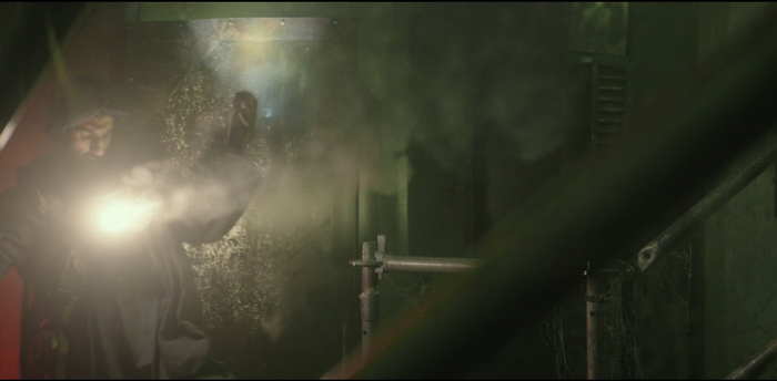 Фильм: Героиня попадает в не самое чистое место, где вынуждена укрываться от преследователей. В паре кадров цветовая гамма меняется на темно-красную (видно плохо, но для наглядности).