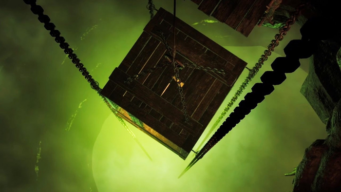 Игра: Герои решают спуститься на самый нижний уровень и подорвать подземелье вместе с монстрами. Вниз они спускаются на лифте, вокруг которого можно заметить зеленое свечение.