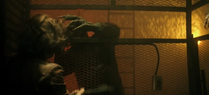 Фильм: Монстр появляется на экране не в виде скримера, но в виде когтистой лапы, медленно показывающейся из-за приоткрытой двери.