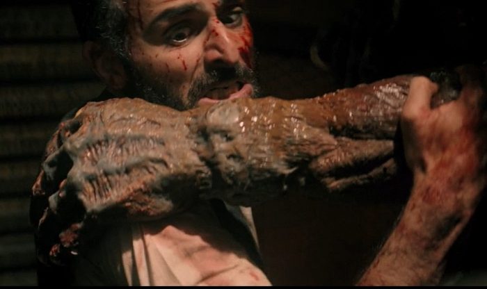 Фильм: Финальный бой с монстрами проходит в замкнутом пространстве, где героев со всех сторон хватают через стены.