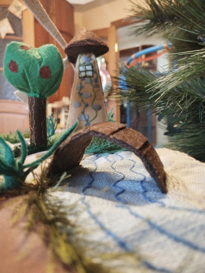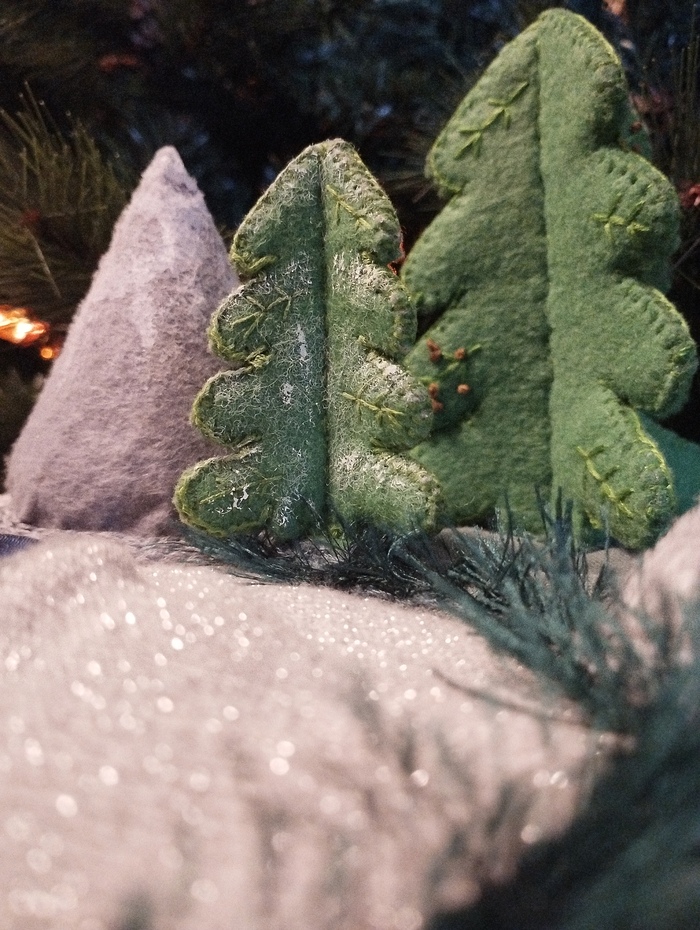 Теперь давай взглянем на лес. Мы высадили фетровые ели. Вроде дочери нраааааица.