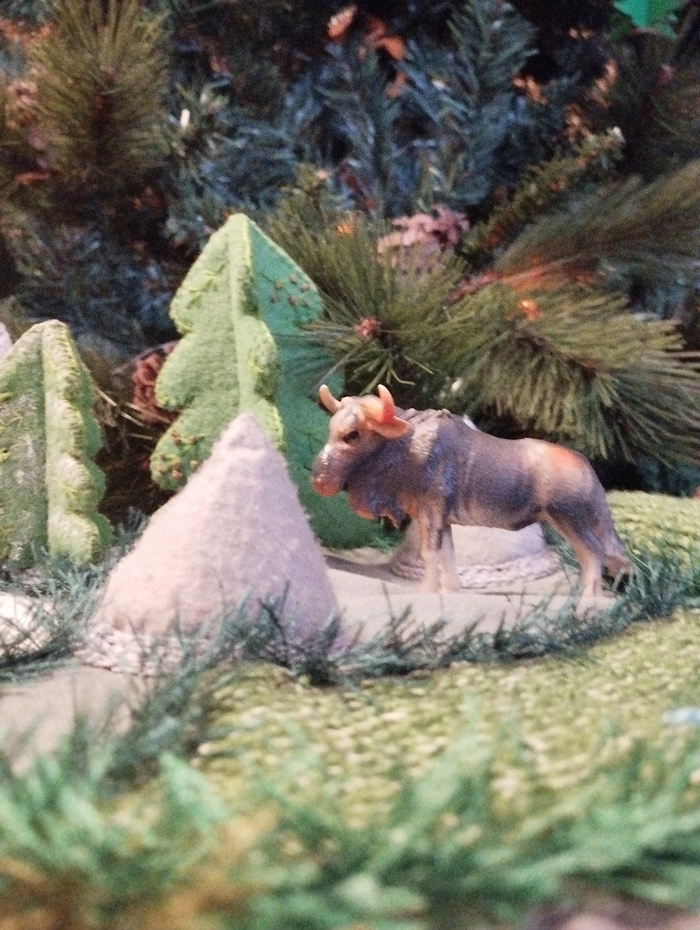 Иногда здесь можно встретить Бычулю. Не пугайтесь, он добрый. Он идёт встречать новый год и собирать шишки с ёлок.