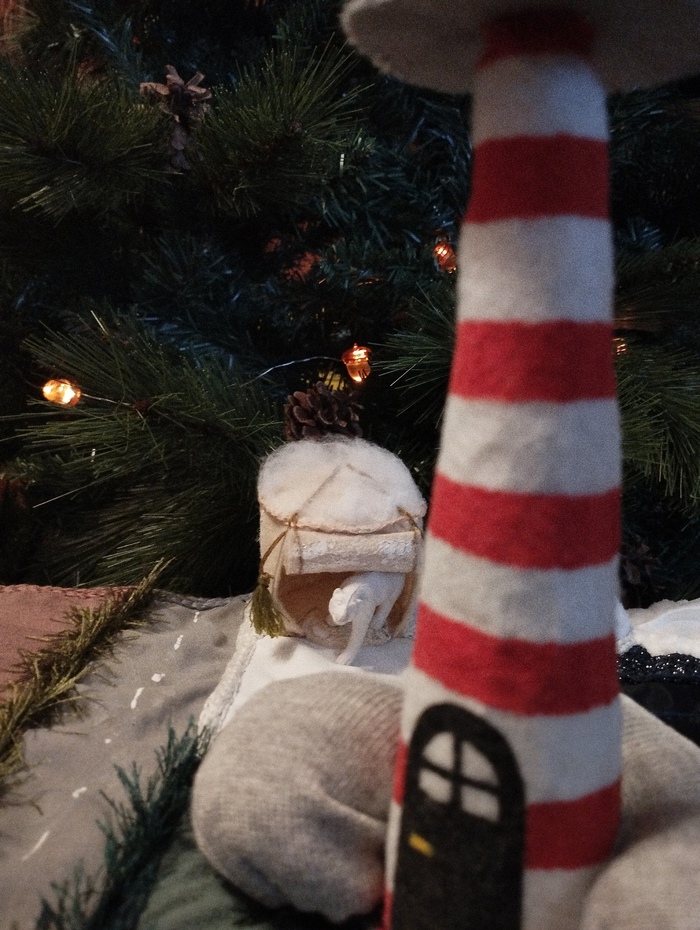 На верхушке маяка у нас дом. Так надо. Но он с фонарём, так что корабли не заблудятся.