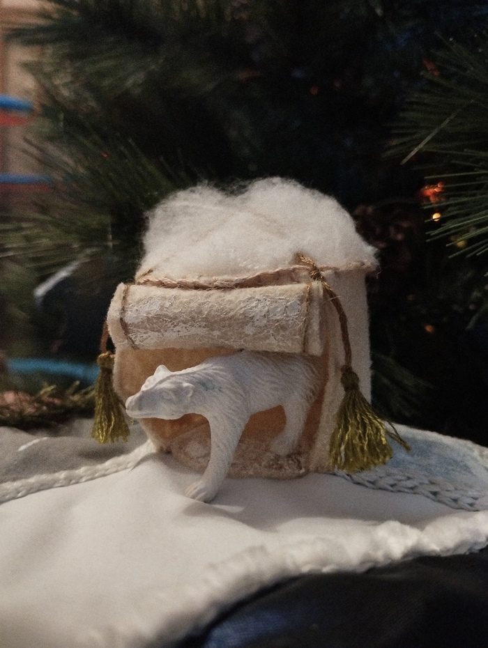 Точно. Юрта. А в ней Умка Копатыч. Видимо живёт там. Ну или... Кто-то там жил, но Умка Копатыч заглянул проверить и теперь очень сыт и доволен.