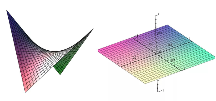 Слева: модель антидеситтеровского пространства. Справа: модель нашей Вселенной / © The Physics Mill