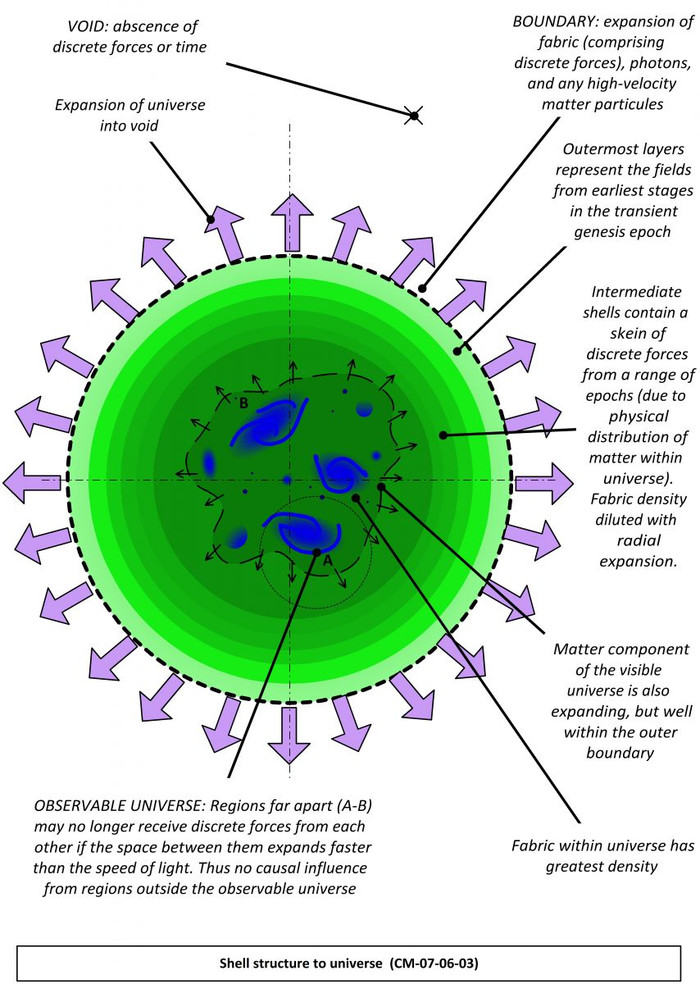 Структура оболочки и космологической границы вселенной, расширяющейся в пустоту / © DPons