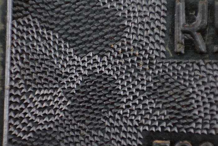 Особенно прекрасен средний – травленые шильдики “пуск” и “стоп”, характерный шрифт и текстура поверхности. Текстура создавалась вручную – выбивая трехгранным инструментом в пресс форме:
