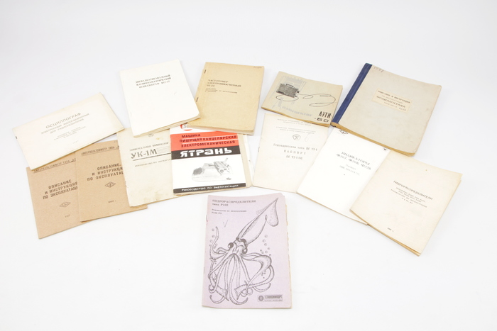 Еще пример. Различная документация обычно выполнялась строго – просто книжица с названием на обложке. Иногда на обложке присутствовало изображение прибора (как пишущая машинка ятрань или диапроектор ЛЭТИ). А теперь посмотрите как сильно контрастирует буклет “гидрораспределители” с морским животным на обложке!