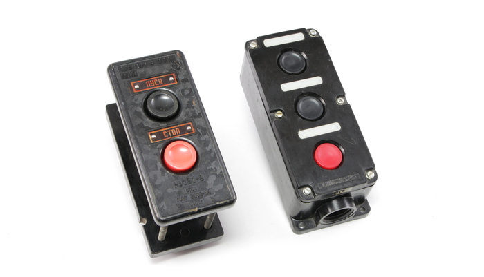 Хотя давайте перейдем к примерам. Вот кнопочные посты КУ121-2 выпуска 56-59 годов: