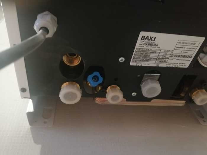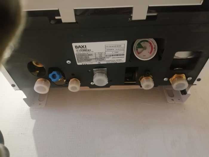 котел у нас вот такой Baxi 14F, он у нас от застройщика, его не выбирали. В нем два контура на горячую воду и соответственно отопление.