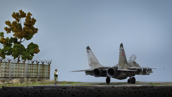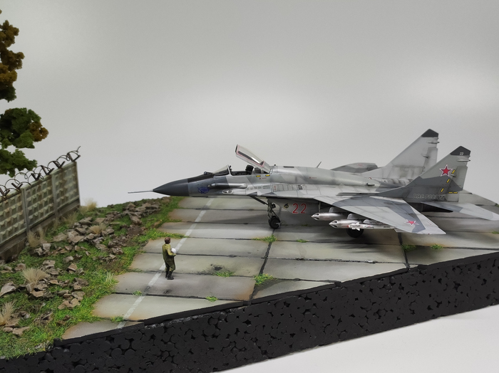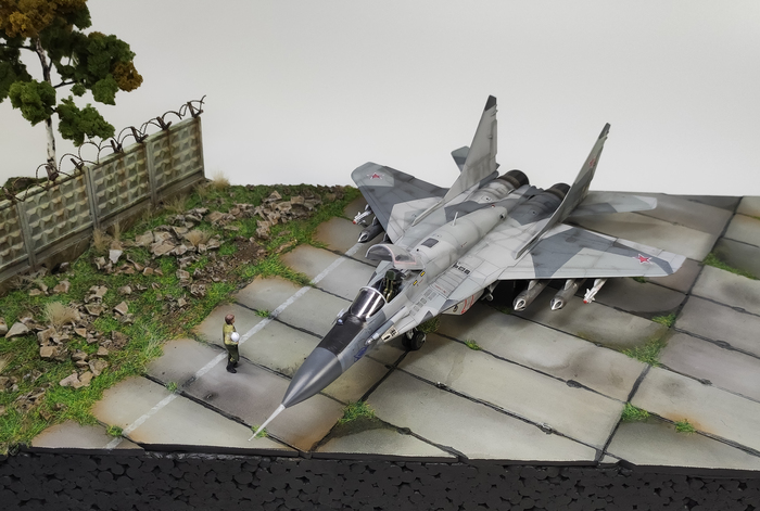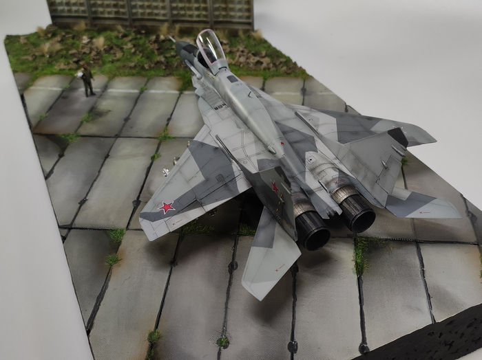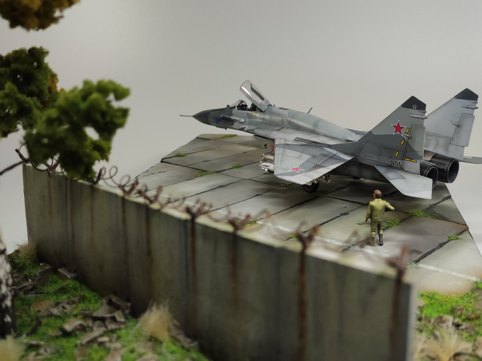 По итогу - нахожу свой опыт удачным. Я обзавелся колоритной виньеткой внушительных размеров, на которой можно снимать советскую и российскую технику. В планах сделать изрядно состаренный Ми-24А, который должен хорошо вписаться в антураж "заброшки".