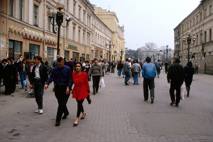 Арбат — это не просто улица, это символ Москвы. Но в 1990-е годы он был далек от своего нынешнего лоска. Тогда это было место, где сходились интуристы, уличные музыканты, торговцы и фарцовщики. Арбат был шумным, грязным и опасным.