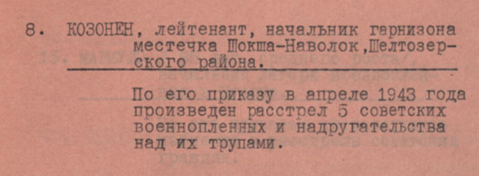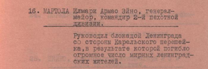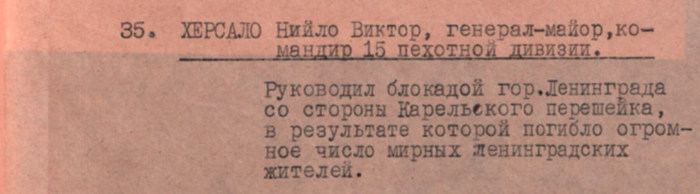 Список финско-фашистских захватчиков, совершавших преступления в оккупированных районах Карело-Финской ССР и Ленинградской области