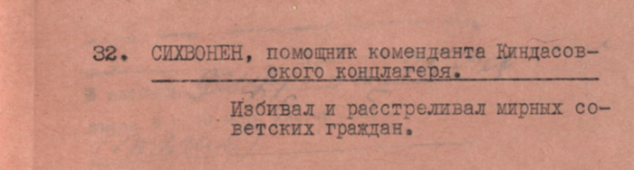 Список финско-фашистских захватчиков, совершавших преступления в оккупированных районах Карело-Финской ССР и Ленинградской области 1944 г. Государственный архив Российской Федерации