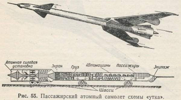 Если бы не одно «но». Изначально этот самолёт появился в одной из советских книг, посвящённой применению атомных установок на самолётах. Только вот в оригинале это был не бомбардировщик, а пассажирский авиалайнер.