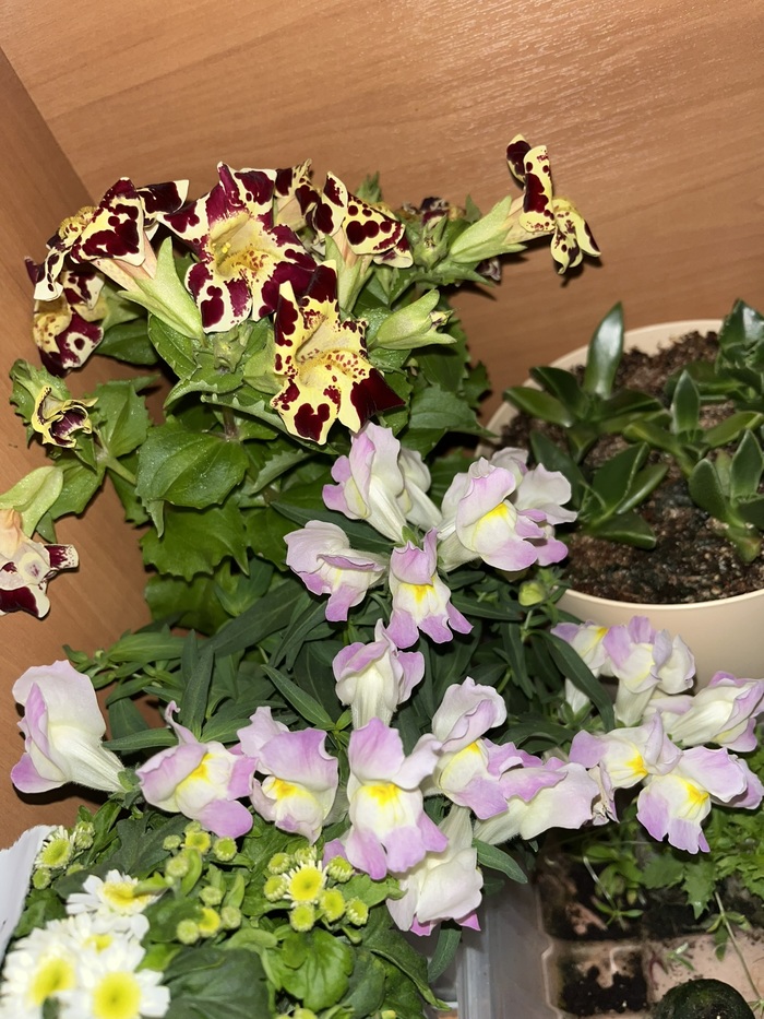 Мимулюс Леопардовый Русский размер F1 (сверху) и львиный зев - Антирринум карликовый Флораль Шоу Биколор (снизу):