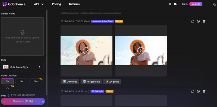 GoEnhance AI предлагает пользователям простой и доступный способ полностью изменить внешний вид их видео. С помощью этого инновационного инструмента вы можете преобразовать обычное видео в захватывающее произведение искусства, используя широкий спектр стилей, включая пиксельный вид, анимацию и даже стиль аниме.