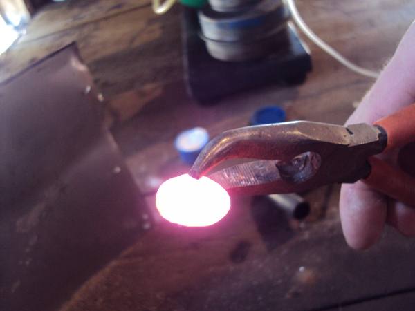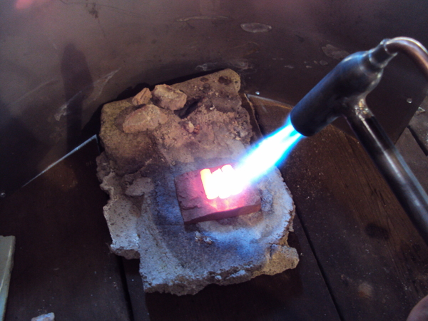 Вчера вечером пришла мне идея сделать из них кольцо, и сегодня я попытался воплотить её в жизнь. Первым делом нужно сделать из них слиток нужных размеров. В этом помогла мне моя бензиновая горелка, которую месяц назад как собрал.