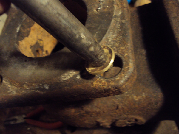 И разворачиваем при помощи стального пробойника, молотка и наковальни с нужным отверстием. И не забываем периодически отпускать, нагревая заготовку до малинового цвета. Это чтоб не треснула во время разворачивания.