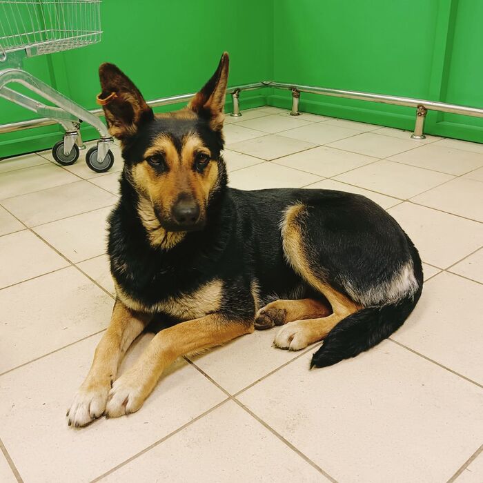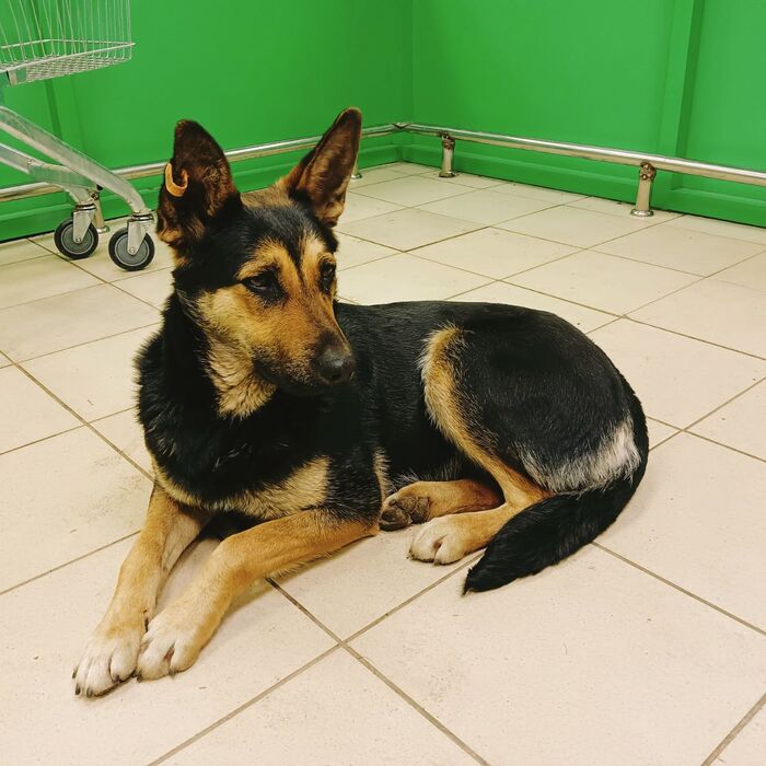 Очень ласковая, покладистая и толковая полукровка овчарика, которая выживает на улице.